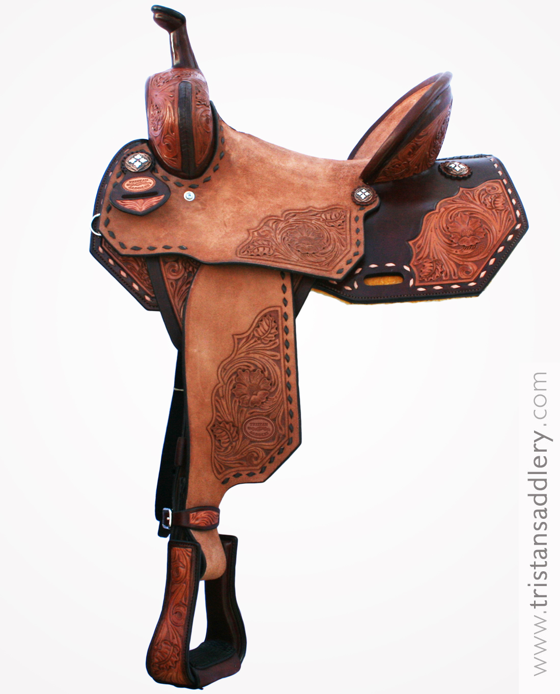 Todas nuestras monturas están diseñadas con la mejor calidad internacional. Fabricadas con fustes fuertes de madera de pino forrados en cuero crudo, cueros americanos, herraje de acero inoxidable y borrega natural .